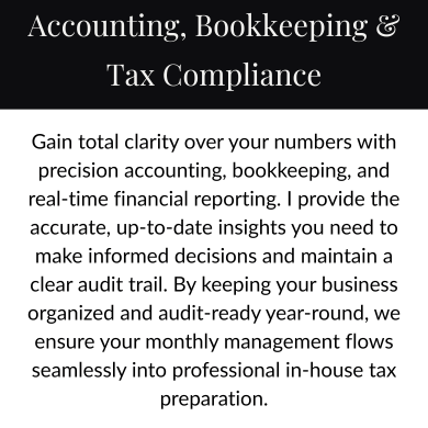 I help real estate investors, 1099 contractors, and small businesses keep more of their hard-earned money through full-cycle financial oversight. My approach ensures your business is protected and your growth is supported at every stage.